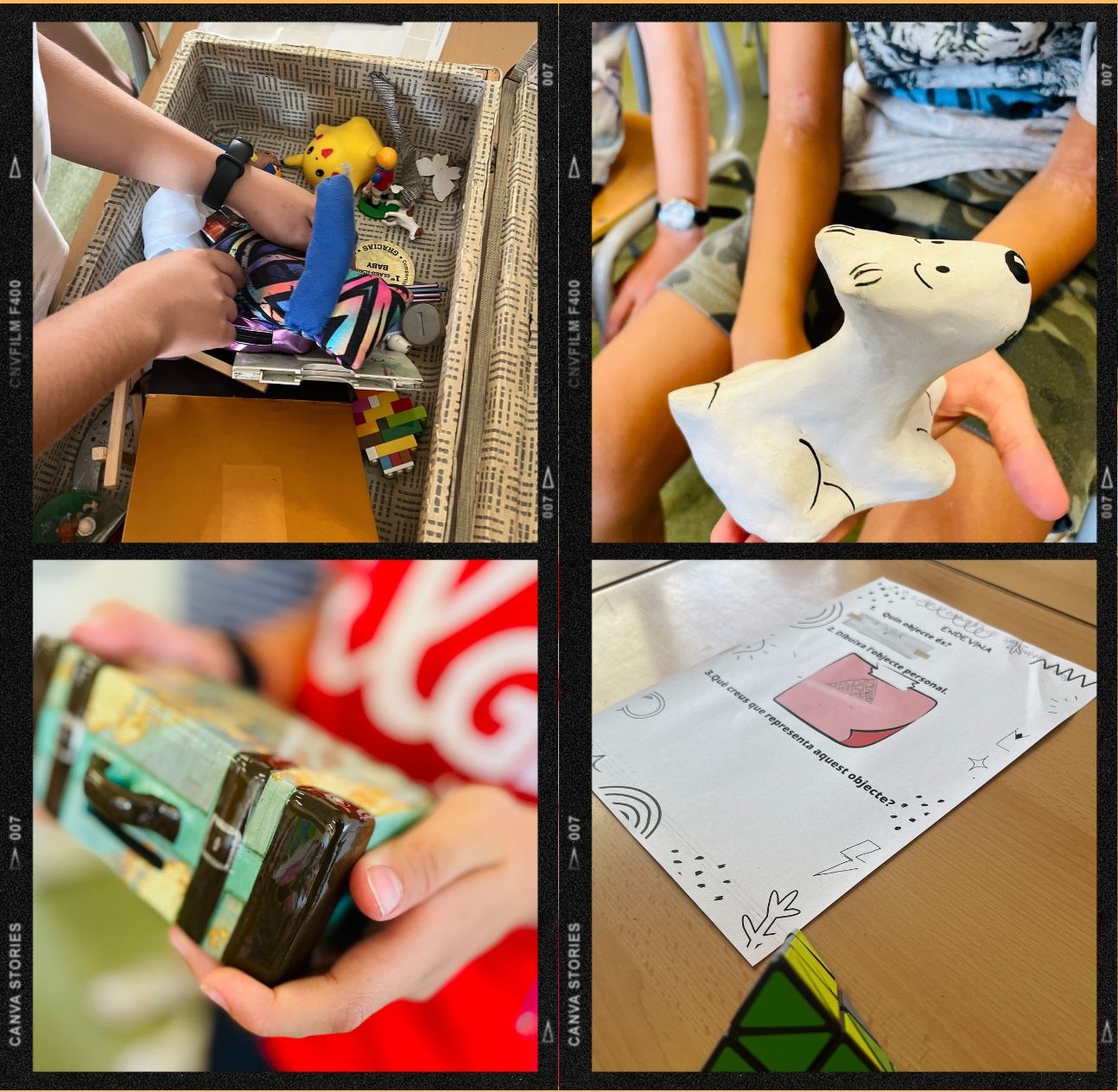 La primera setmana de setembre l’Ana, la Núria, la Sònia i en Marco ens van preparar un joc per conèixer-los millor. Ens vam trobar una maleta plena dels seus objectes personals i l’objectiu era esbrinar de qui era cadascun. Eren objectes molt importants per elles i ell que representaven com són i quines aficions tenen.