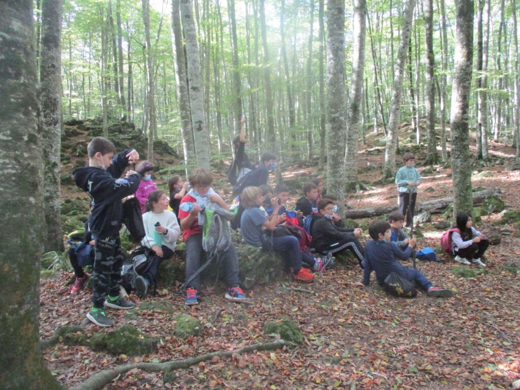 Després d’una hora i mitja de viatge, els monitors, que ens estaven esperant, ens van guiar fins a un punt partida de la FAGEDA i vam fer una activitat. Consistia en observar els arbres i la vegetació i ens van dir que aquests donen molta energia. Després ens van dir que triessim un arbre i que l’abracéssim per agafar tota l’energia positiva que desprèn. Tot seguit ens van demanar que ens fixéssim en aquella natura que ens envoltava i varem gaudir dels arbres que eren molt alts, les fulles de colors marrons, rogencs, i vermellosos.