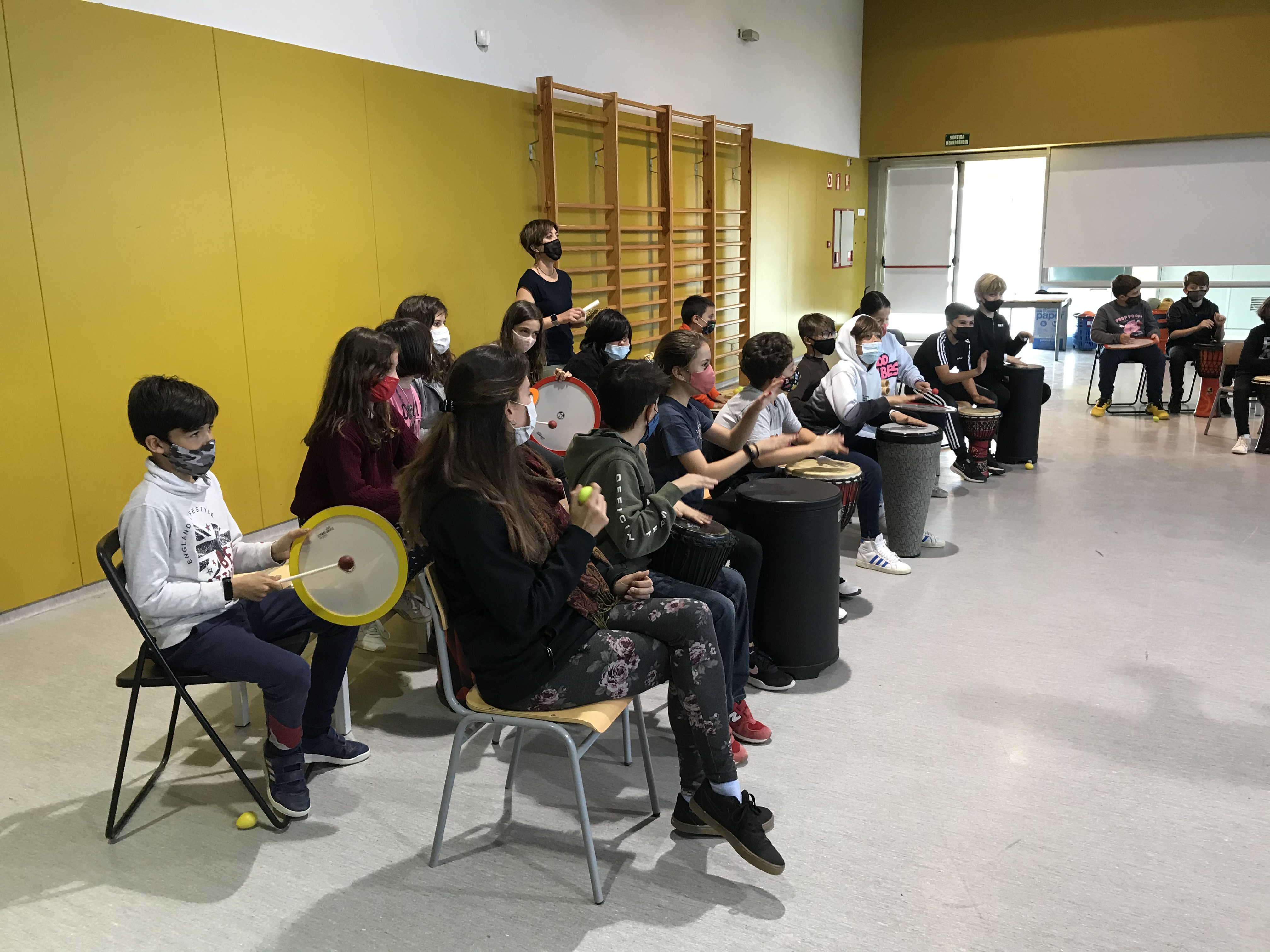 Per la tarda, vam anar al gimnas i en Santi Carcassona i ens va fer una classe de percusió amb molts instruments diferents. Ens vam divertir molt.