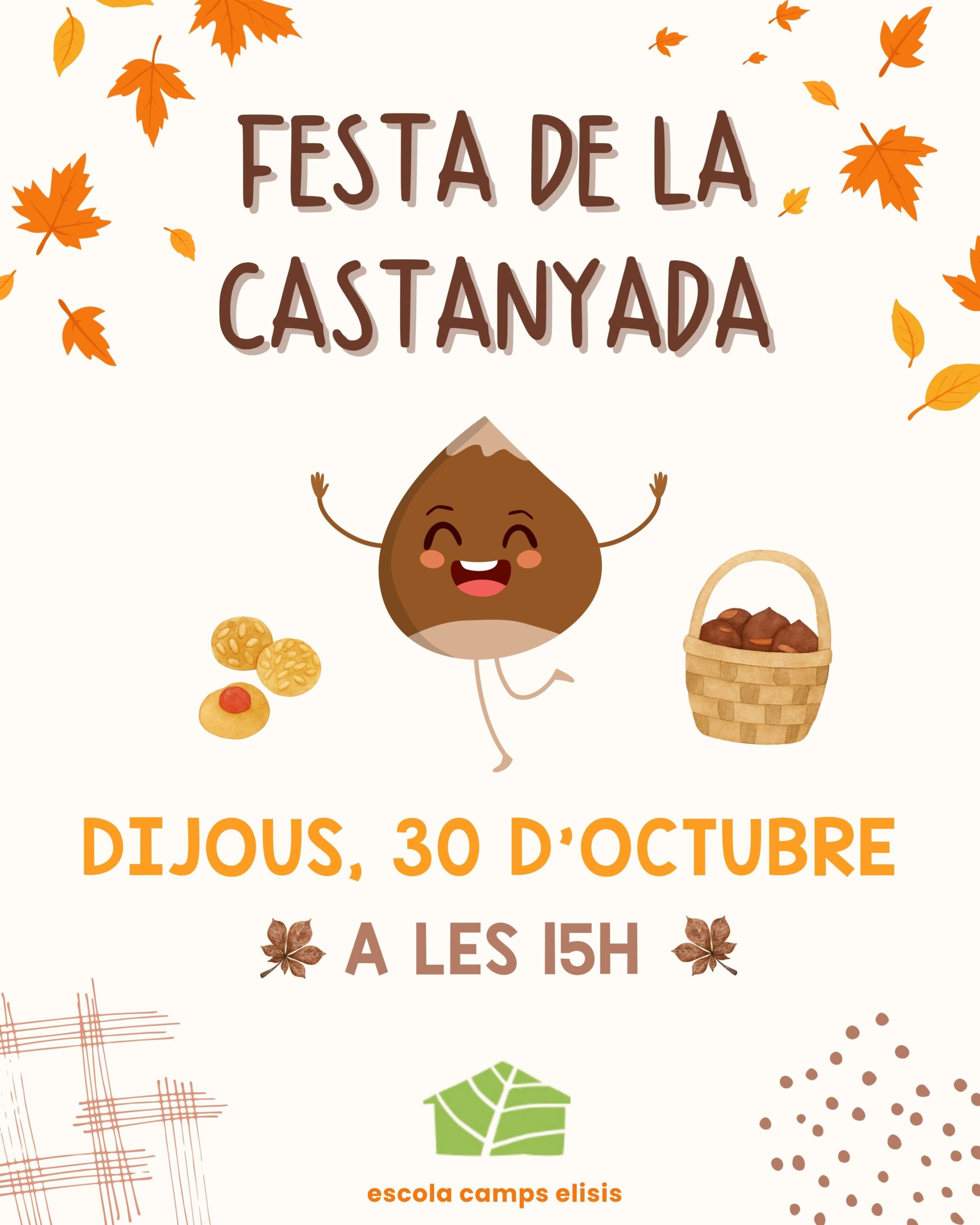 Demà, dijous a les 15:00 h, celebrarem la Festa de la Castanyada al pati de l’escola. L’alumnat podrà venir vestit de castanyer, castanyera o amb algun detall de la tardor per gaudir d’aquesta tradició tan estimada.