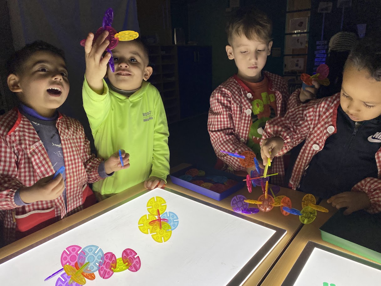 Espai Llums i Ombres – P4B Feu un comentari / Per Escola Camps Elisis / 1 de desembre de 2021 / Arquiescola Bones Pràctiques Educació Infantil Caus d'Aprenentatge I3 / I4 / I5 I5B Portada / espais d'aprenentatge Aquesta setmana les nenes i els nens de la classe de P4B hem experimentat a l’espai de “Llum i ombres”. Ens ho hem passat molt bé jugant a les fosques i experimentant amb les taules de llum, les llanternes i pintant amb la llum negra. Què divertit!