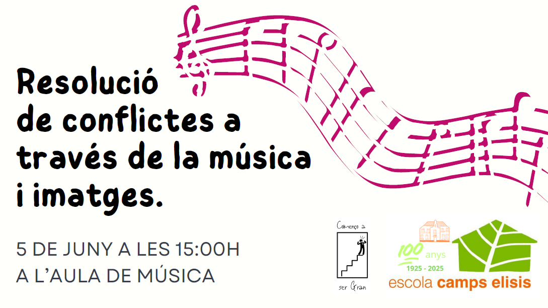“La resolució de conflictes a través de la música i les imatges”. Una proposta pràctica i reflexiva que oferirà recursos útils per afrontar els conflictes familiars a través de l’art, potenciant l’expressió emocional i la comunicació. Des de la Comissió COCOBE, us animem a participar i compartir aquest espai d’aprenentatge. Us hi esperem!