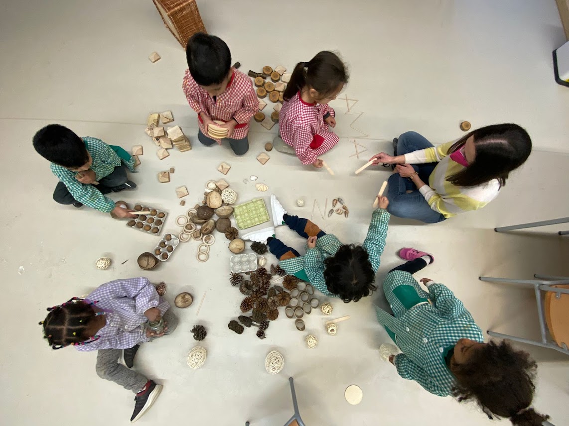 Aquesta setmana, les Bruixes i els Bruixots (P4A) hem pogut descobrir l’espai d’art natural, on hem estat autèntics artistes! Hem construït obres d’art molt boniques, hem confegit el nostre nom, hem fet mandales, hem comptat i hem fet sèries. I tot això amb material que ens ofereix la natura, com fulles, petits troncs, pinyes, petxines i nous, entre altres. Ens ho hem passat súper bé!