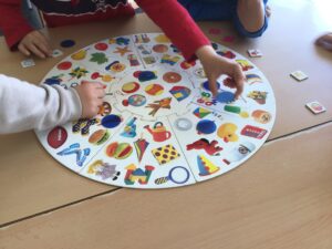 A la classe dels follets gaudim molt jugant i a poc a poc anem aprenent a respectar el torn, les normes, acceptar guanyar o perdre…
