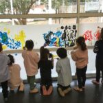 També hem creat un mural col·lectiu amb pintura, utilitzant colors vius i alegres, inspirats en els paisatges, teles i expressions artístiques africanes. Ha estat una experiència d’expressió lliure, cooperació i creativitat compartida.