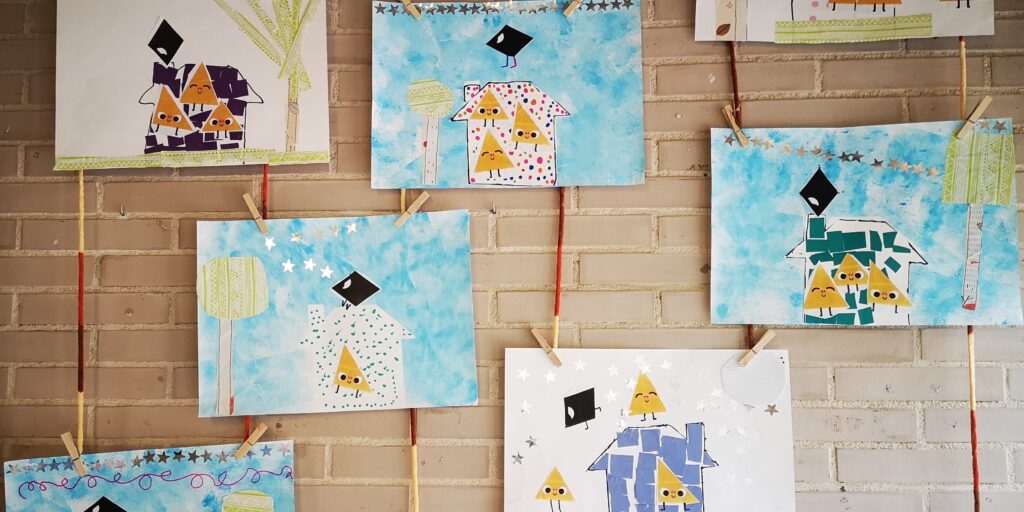 HEM FET UN COLLAGE DEL CONTE ON HI SORTIEN ELS TRES TRIANGULETS, AIXÍ COM EL ROMBE FEROTGE.