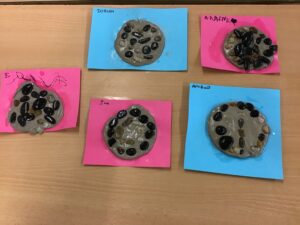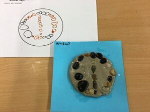 AQUESTA SETMANA ELS NENS I NENES D’I4 HEM FET MOSAICS AMB PEDRES.
