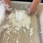 Aquesta vegada hem volgut portar l’hivern a l’aula d’una forma molt especial. Hem creat la nostra pròpia neu utilitzant dos ingredients ben senzills: escuma d’afaitar i bicarbonat. Ha estat fascinant veure les cares de sorpresa en notar com la barreja es tornava freda i esponjosa, molt similar a la neu real!
