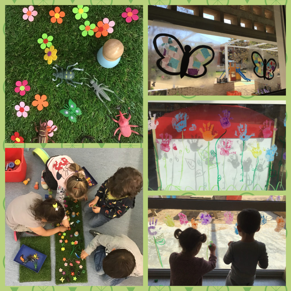 HOLA FAMÍLIES!! TOT I QUE AQUESTS DIES ENCARA FACI FRESCA I PLUJA, LA PRIMAVERA JA FA UN TEMPS QUE ÉS AQUÍ! HEM DESCOBERT MOLTES COSES I HEM ESTAT TREBALLANT I JUGANT EN RELACIÓ A AQUESTA ESTACIÓ DE L’ANY! HEM DECORAT ELS VIDRES DE LA CLASSE AMB PAPALLONES I FLORS I HEM INVENTAT MONS PER JUGAR MOLT XULOS!!
