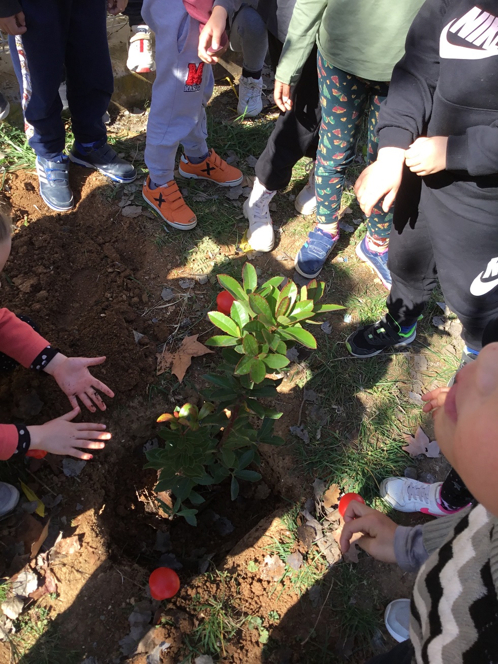 Els infants de 1r hem plantat un llorer i un cirerer d’arboç. La Joana ens ha estat explicant què necessiten els nostres arbres i amb la seva ajuda els hem plantat al pati de l’escola.