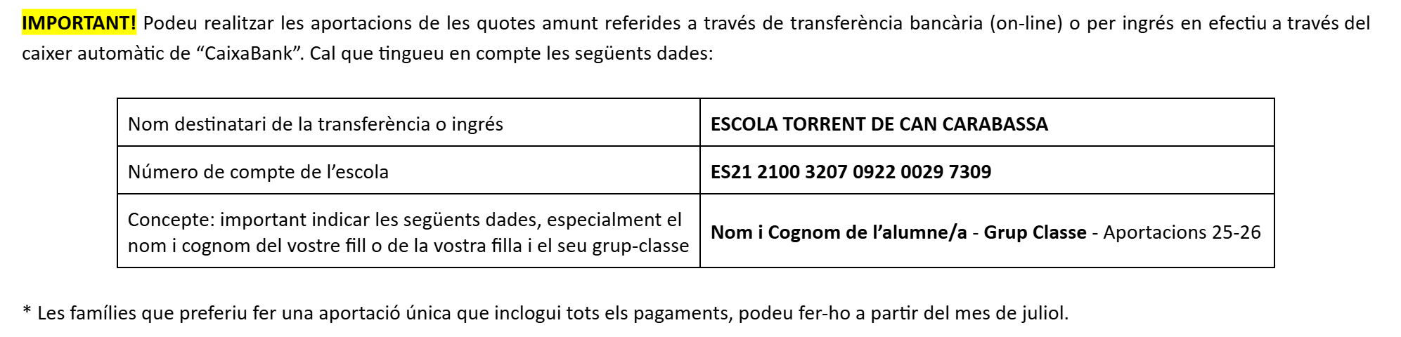 Aportacions famílies