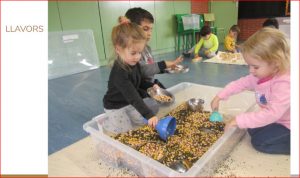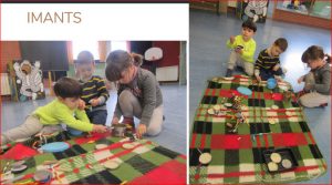 Els nens i les nenes circulen lliurement pels diferents espais de ciència disposats en raconets de l’aula i del passadís.