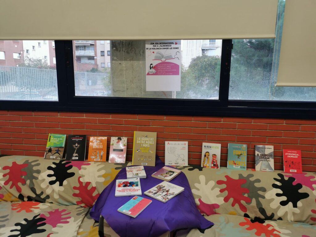 – La coordinadora de biblioteca ha preparat dues exposicions literàries 📚📖 al voltant del 25-N, una per infants i una altra per l’equip educatiu; ambdues nodrides pels llibres que ens ha facilitat la biblioteca municipal a través d’una de les comissions de l’AFA.