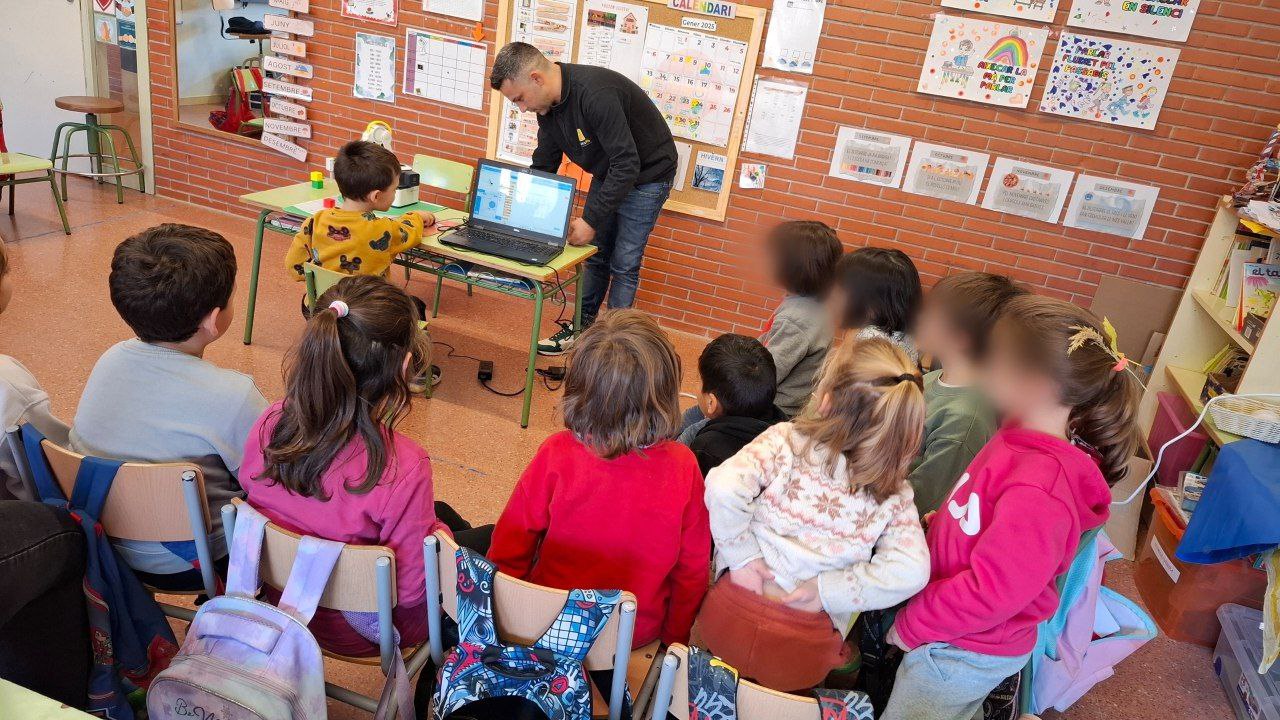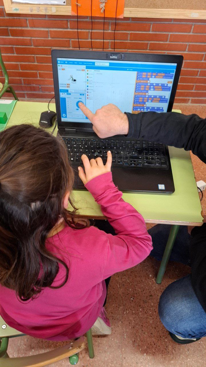 Ens van explicar com el controlen des de l’ordinador i com li donen ordres perquè es mogui. Després, tots i totes vam tenir l’oportunitat de provar de programar-lo, fent que el robot es desplacés seguint les nostres instruccions.