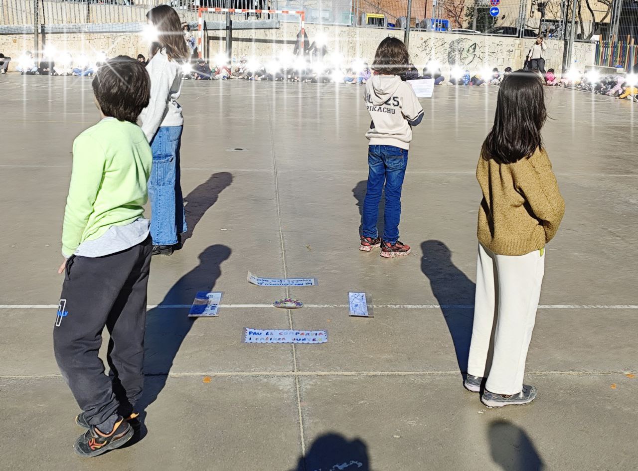 Avui 30 de gener celebrem el Dia Escolar de la No violència i la Pau trobant-nos al pati tota l’escola, escoltant un manifest de pau 📃 a càrrec de l’alumnat de 4t i escoltant una cançó 🎶 promotora de la pau☮️ i la bona convivència mentres bombolles s’enlairen com els nostres desitjos de pau ⭐️que han omplert les aules i passadissos del centre.