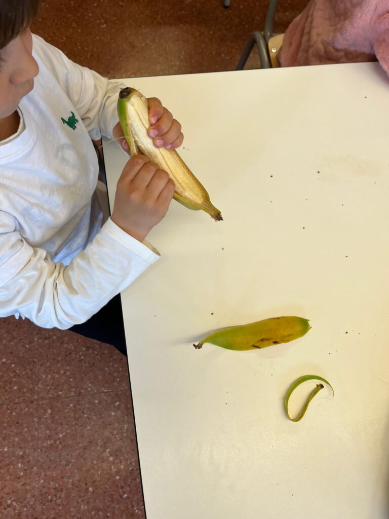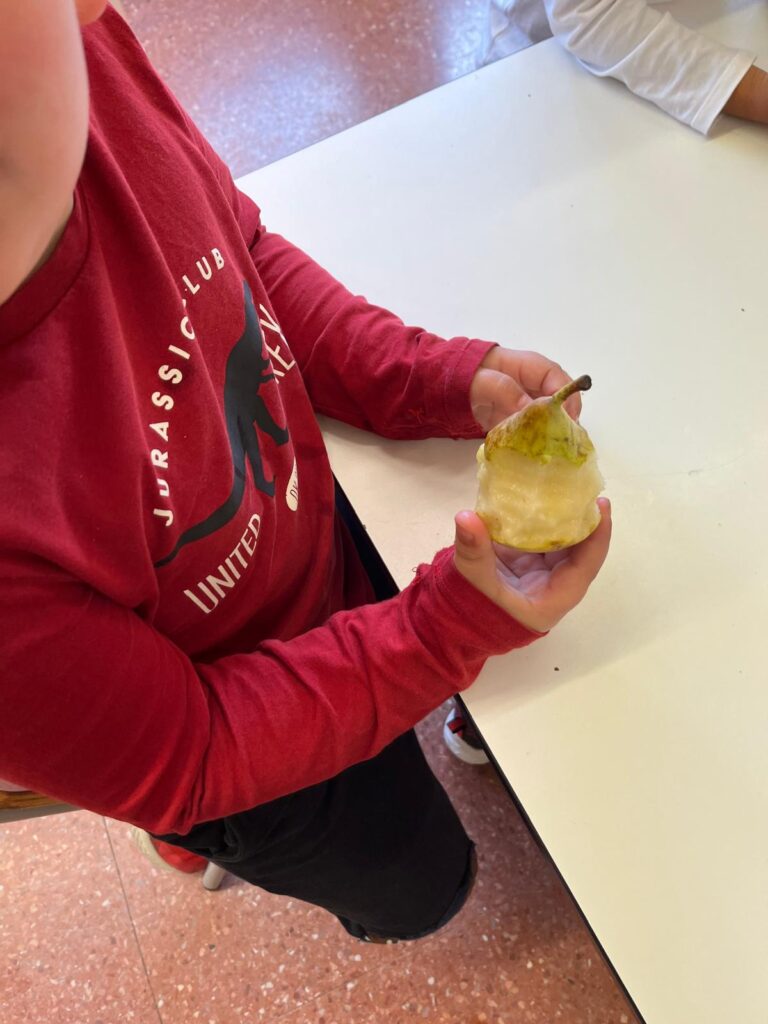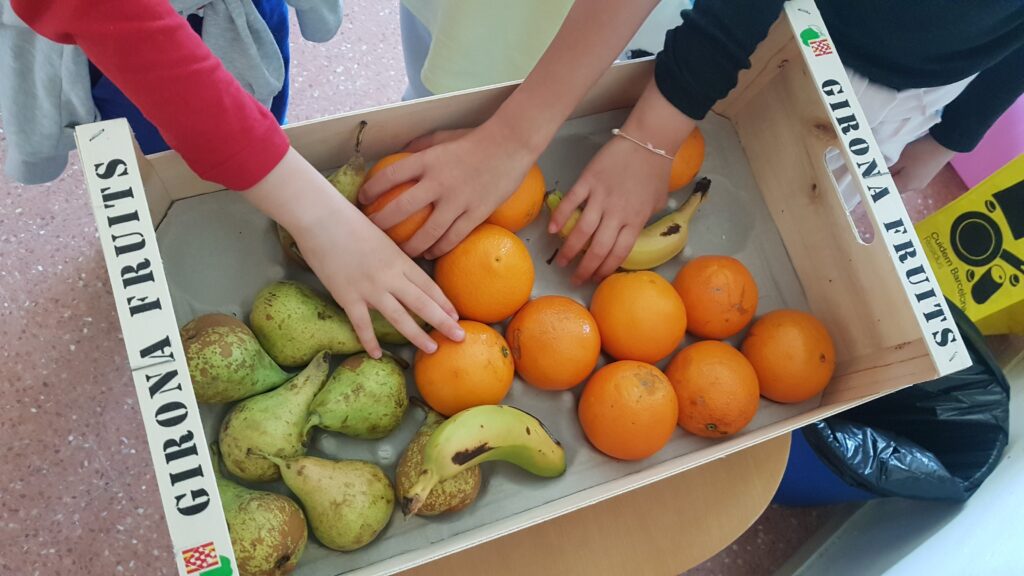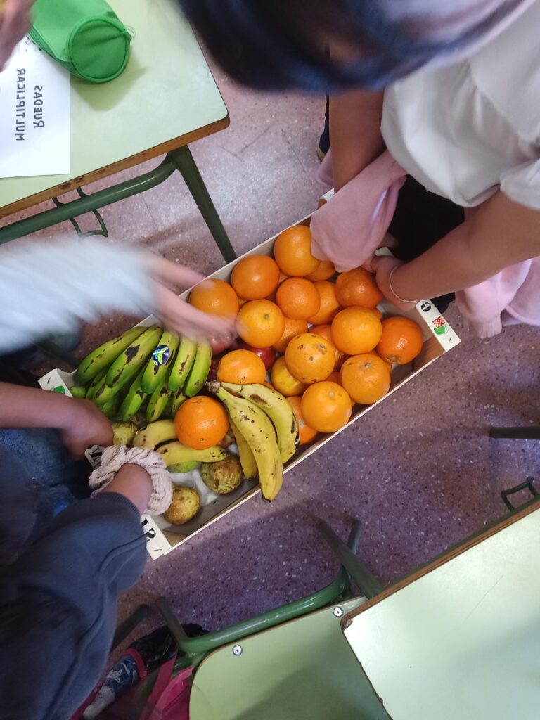 La setmana passada vam repartir poma, plàtan, pera i taronja als infants a l’hora de l’esmorzar.