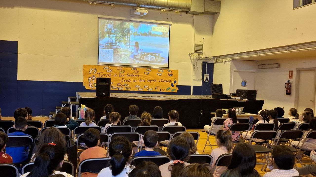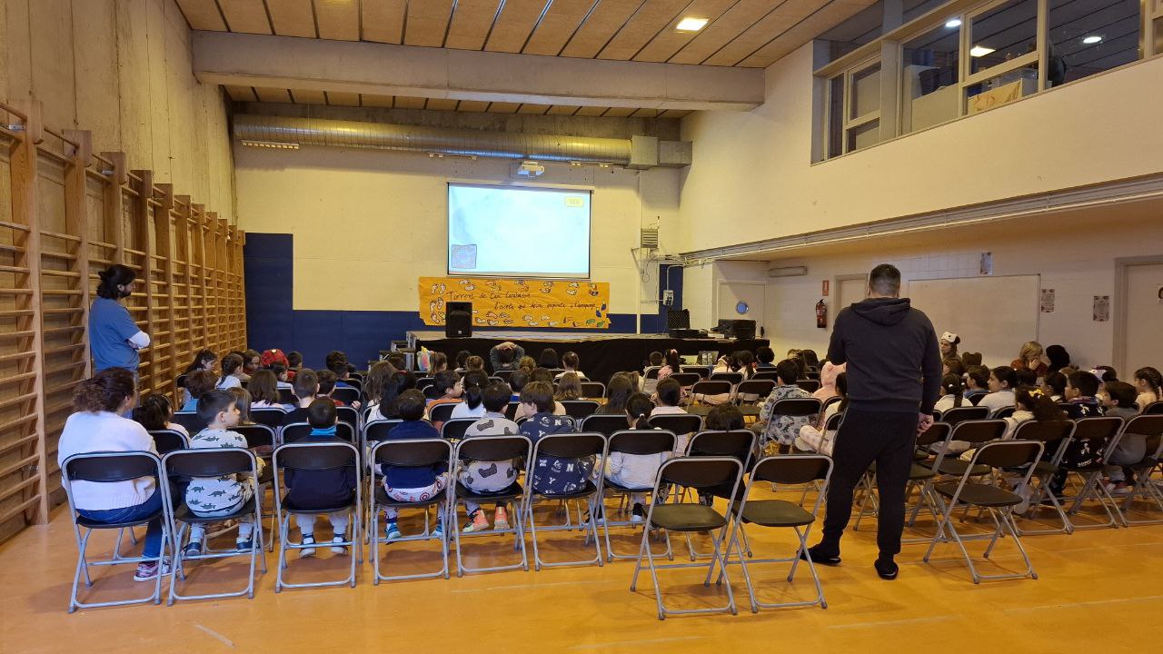 Avui el Toni, vestit amb pijama i sabatilles d’anar per casa, ha tingut l’ocasió de presentar l’avantprojecte de transformació del pati de l’escola a l’alumnat de l’etapa de primària.