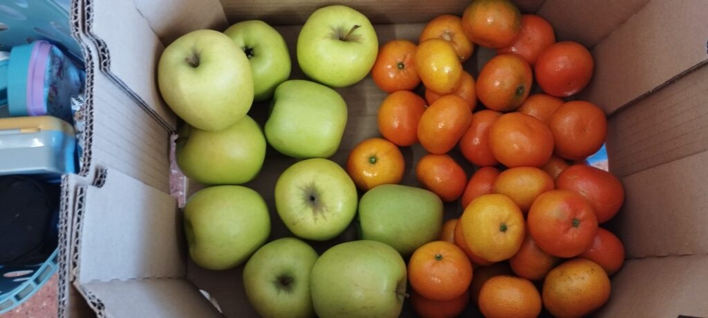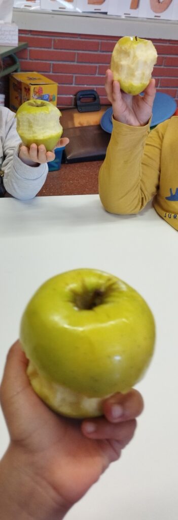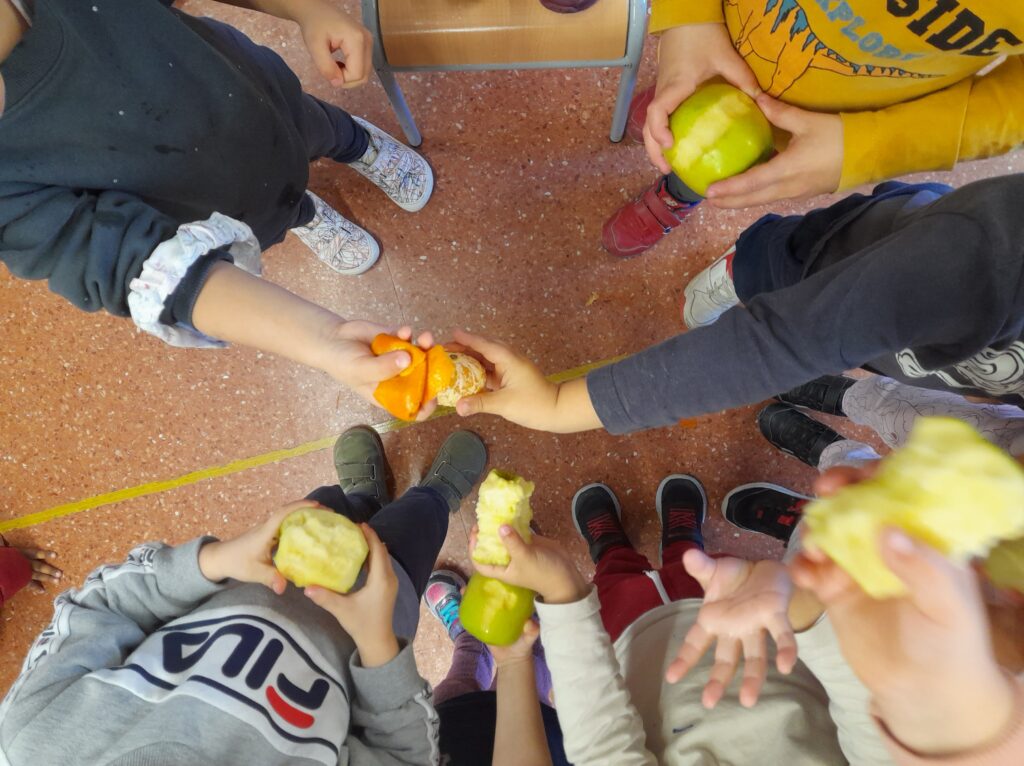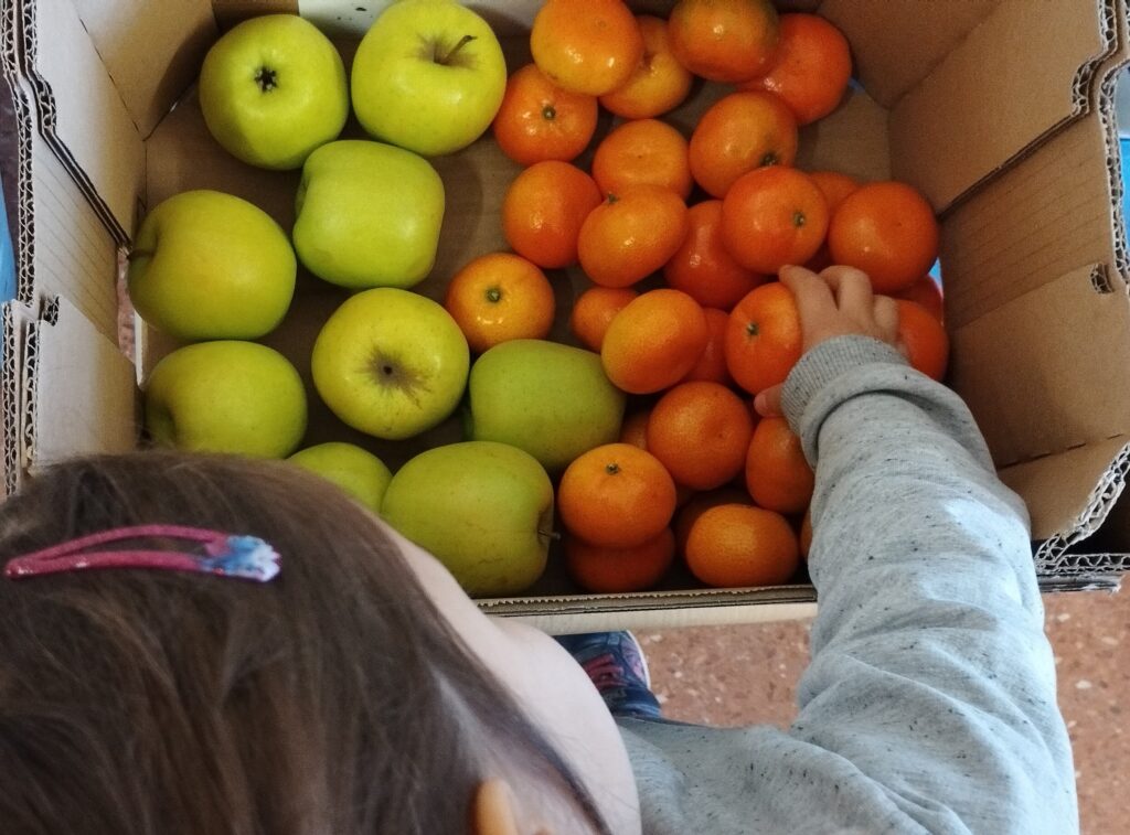 Aquesta setmana hem repartit poma, plàtan, mandarina i taronja als infants a l’hora de l’esmorzar. Ha estat una experiència molt positiva!