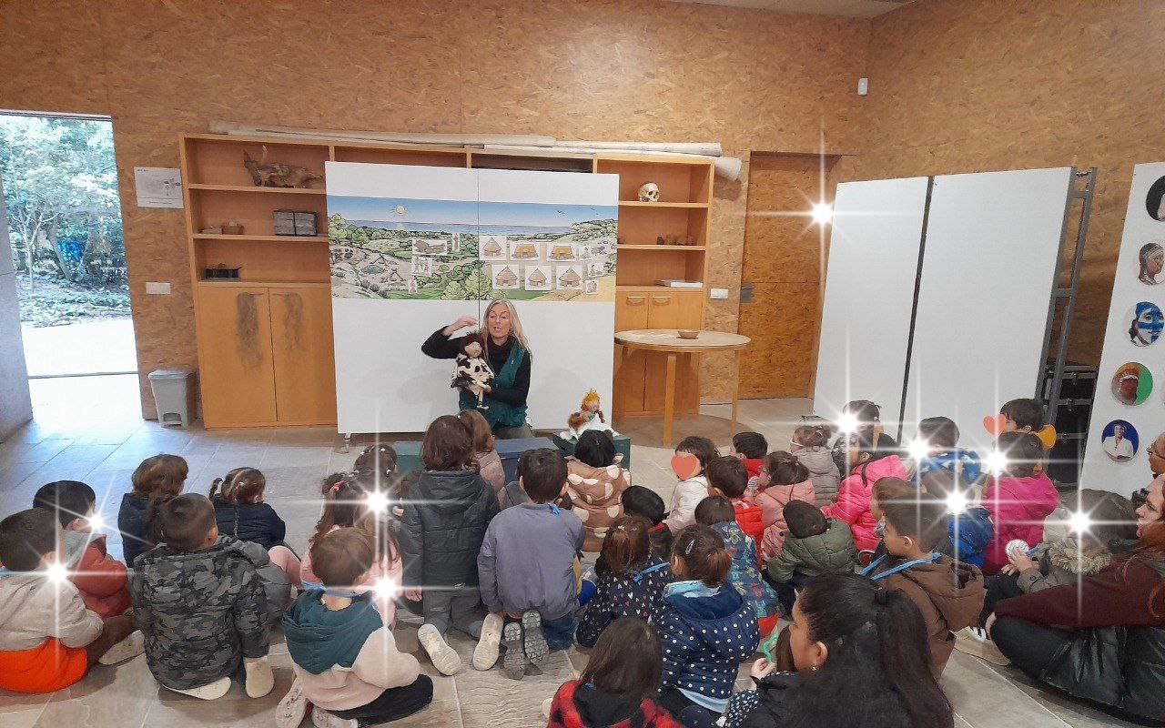 La sessió va començar amb una representació de titelles, on vam aprendre que a la prehistòria, es va començar a extreure d’aquest lloc, un mineral de color verd que es diu variscita.