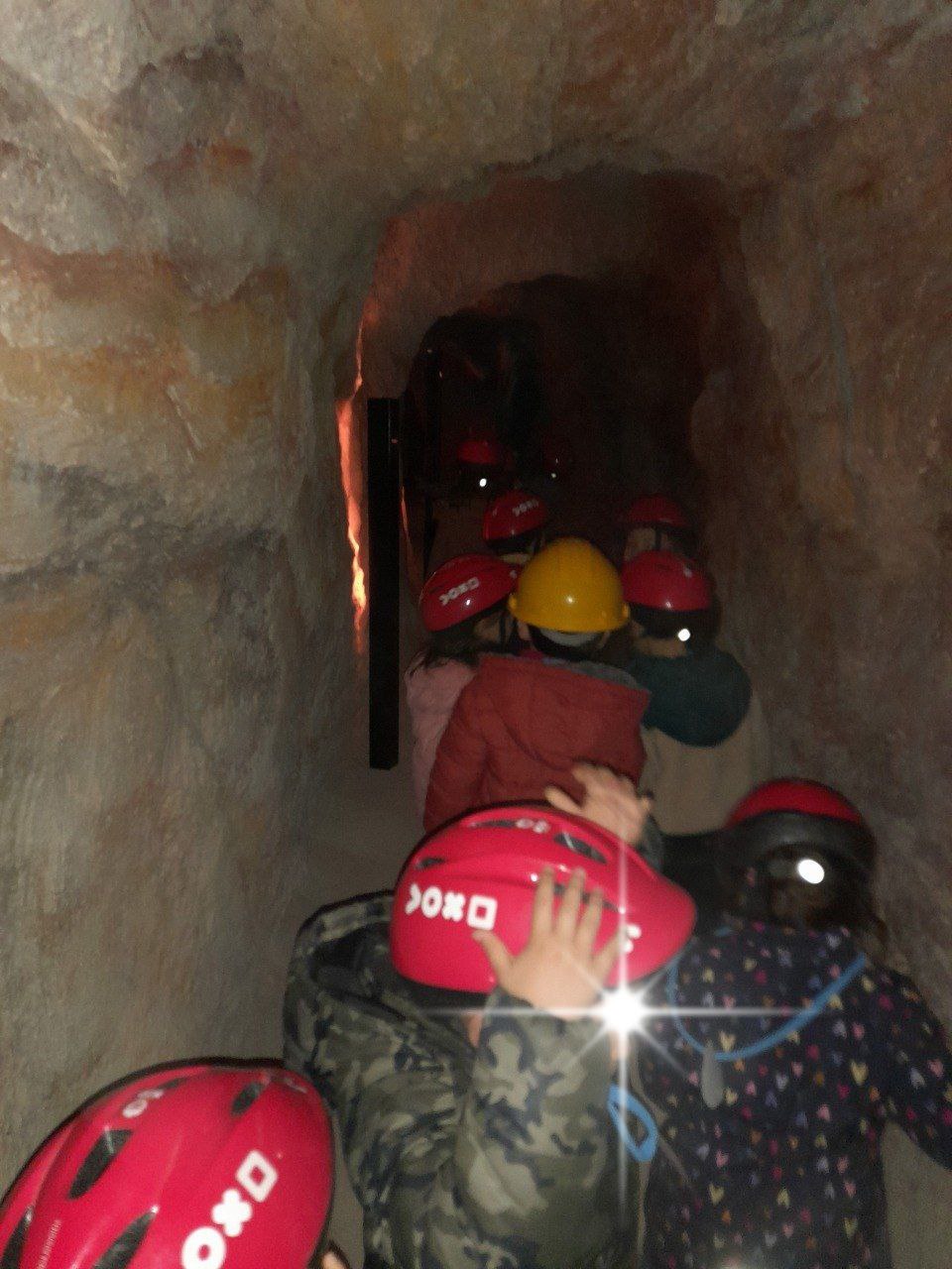 A continuació, ens vam posar els cascs de miners i cap a la mina falta gent! Allà vam passejar pels diferents caminets que es diuen galeries.