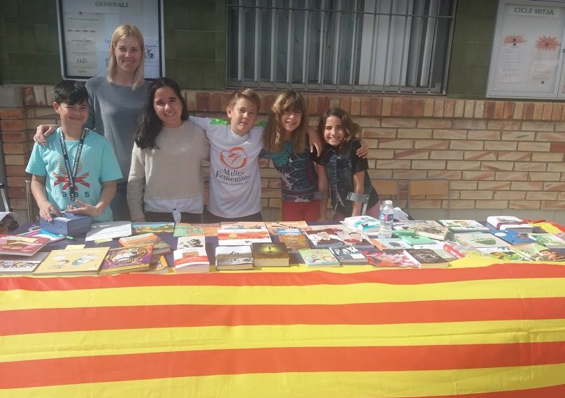 Els nens i nenes de sisè fan una bonica parada de llibres i roses per sant Jordi.