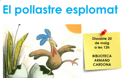 Dissabte, 20 de maig a les 12h a l’Armand Cardona, hora del conte: “El pollastre esplomat”. I a la tarda la Festa de la Diversitat a la pl. de la vila.
