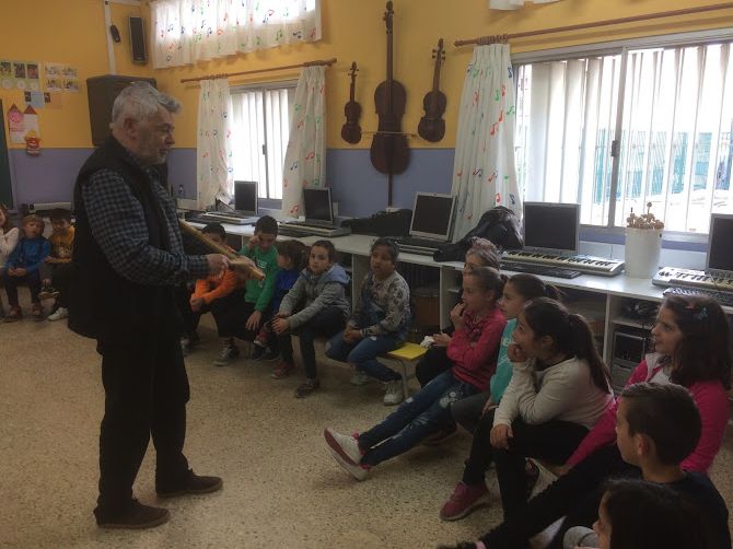 El senyor Simó va venir a l’escola Canigó amb els seus instruments tradicionals.