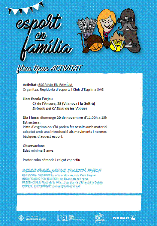 Diumenge 20 de novembre aneu en família a gaudir de l’esgrima, un esport poc conegut i practicat. Al pati de