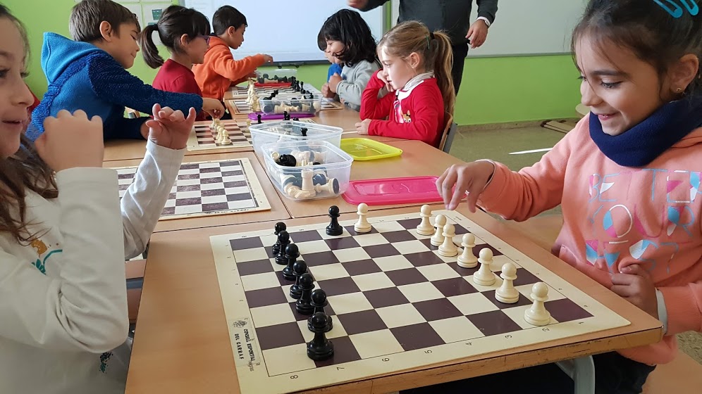 El Xavi va estar una hora cada dia durant una setmana, i ens va fer una proposta dinàmica i engrescadora per aprendre a jugar a escacs. Nosaltres que ja teníem alguna idea del curs passat, hem aprofitat al màxim totes les seves propostes i activitats. Així que ara és qüestió de practicar. Ja teniu el taulell a casa? Doncs vinga som-hi a jugar!!!