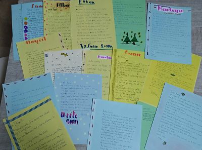 Durant el primer trimestre han escrit cartes de presentació i han creat i escrit postals de Nadal pels companys i companyes amb els quals fan l’intercanvi. D’igual manera ells i elles han rebut cartes i postals de Nadal dels infants de l’Escola Pia durant aquest mes de desembre.