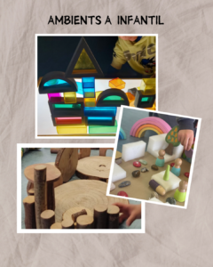 Els ambients en educació infantil són espais dissenyats de manera que afavoreixen el desenvolupament i l’aprenentatge dels infants a través de l’exploració, la interacció i la manipulació de materials. Aquests ambients estan pensats per fomentar la creativitat, l’autonomia, i la socialització, i estan adaptats a les necessitats i interessos dels nens i nenes en cada etapa del seu creixement.