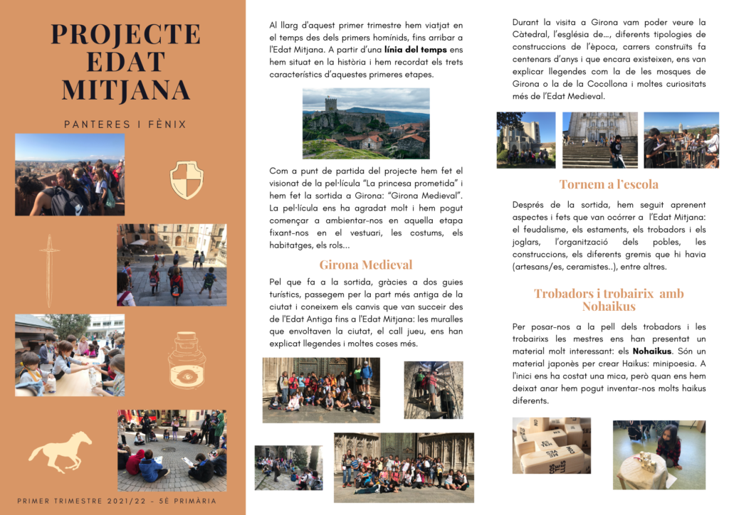 Famílies i alumnes, A continuació us deixem per una banda un a documentació de tot el projecte realitzat a 5è (Panteres i Fènix) sobre l’Edat Mitjana i, d’altra banda, un grup d’alumnes, de forma voluntària, han volgut gravar un programa sobre l’Edat Mitjana. Han pensat com volen que sigui, han redactat tot el que volen