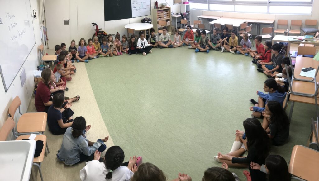 Les nenes i nens de primer han vingut a les classes de quart a ensenyar-nos un Mantra: el Sa Ta Na Ma. Ens han explicat que serveix per relaxar-se, per fer silenci i per estar una estona tranquils i tranquil·les. Aquí teniu algunes imatges dels infants de primer mentre ensenyaven el Sa Ta Na Ma