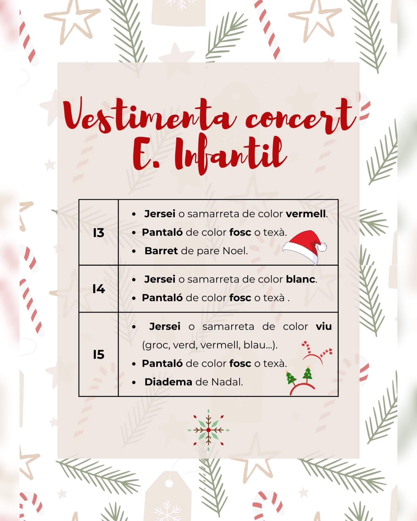 També adjuntem la vestimenta que hauran de portar els nens i nenes a la cantada de nadales.