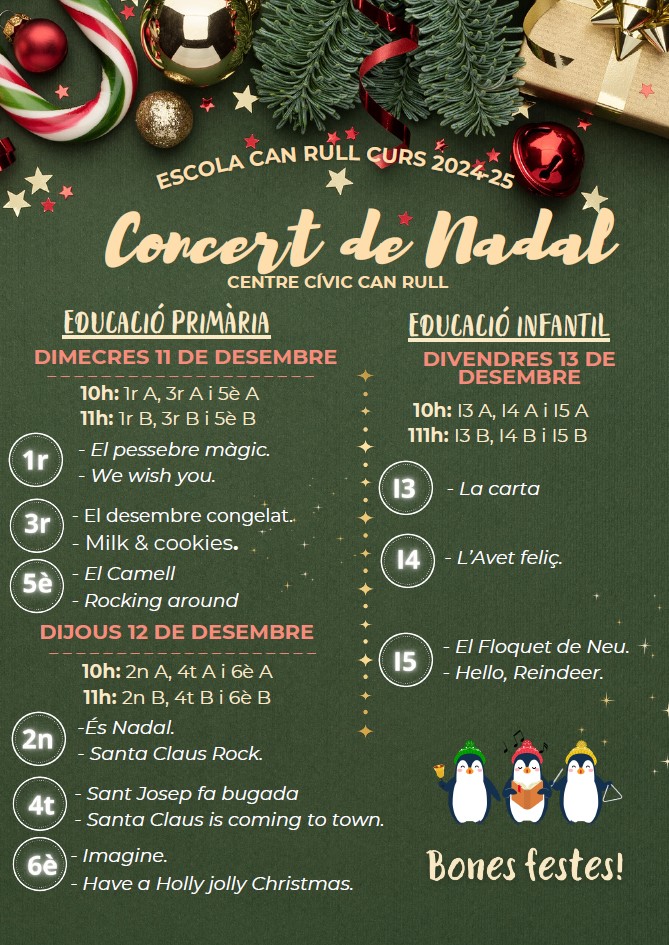 Aquí teniu el programa del CONCERT DE NADAL d’aquest any de l’Escola Can Rull !!