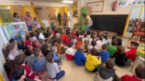 Avui els nens i nenes d’educació infantil s’han reunit al vestíbul de l’edifici d’infantil.