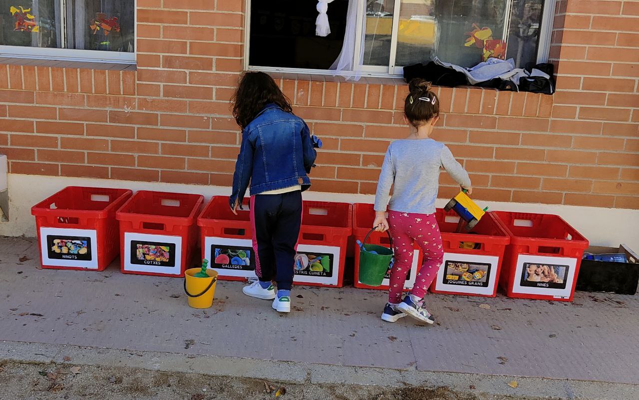 La classificació d’objectes i la discriminació visual són aspectes que treballem a educació infantil. Darrerament hem reutilitzat unes caixes grans per poder fer aquesta classificació amb tot el material de joc que tenim al pati. D’aquesta manera, tots els i les alumnes d’ i3, i4 i i5 agafen el material desitjat i el tornen a endreçar al lloc adequat.