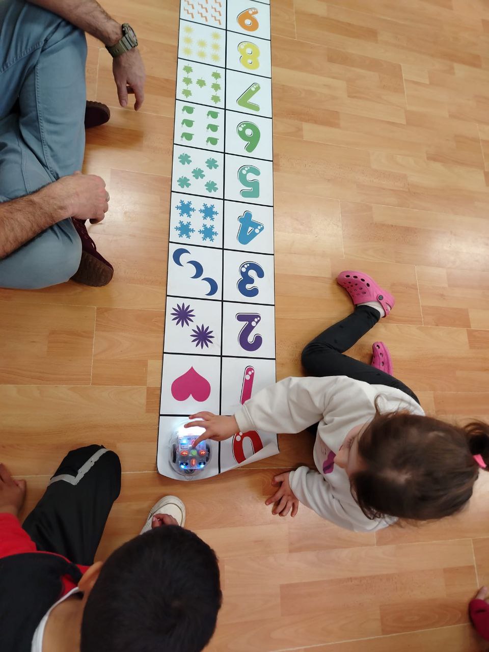 Per dur a terme l’activitat, s’han utilitzat unes làmines amb requadres que contenen diferents ítems (imatges d’objectes, animals o nombres). L’objectiu era programar el Bee-Bot perquè es desplaci d’un ítem a un altre seguint una seqüència correcta. Treballant en parelles, els alumnes han hagut de decidir junts quins passos calia introduir al robot per aconseguir que arribés al seu destí. Amb cada moviment correcte, es generaven expressions d’alegria i aplaudiments a la classe, fent que l’aprenentatge fos una experiència motivadora.