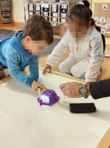 Hem tingut la sort que el Xavi, que coneix molt bé aquest món, hagi col·laborat amb l’escola captivant l’atenció de tots els infants des del primer moment. Amb molta curiositat i entusiasme, els nens i les nenes han escoltat atentament les seves explicacions i han seguit les instruccions amb respecte i interès. Que emocionant ha sigut veure com cada nen i nena es mostrava impacient per provar els Bee-Bots i comprovar com els robots es mouen segons les indicacions que ells mateixos li han anat donant.