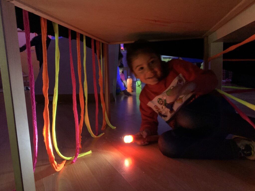 Acabem la vivència d’aula de la llum amb el túnel de la foscor conjuntament la Farigola i el Romaní.