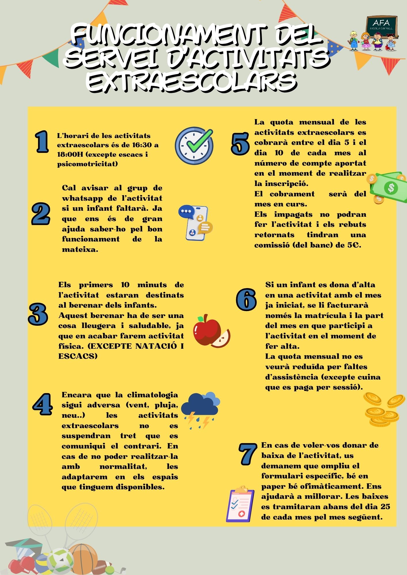 Activitats AFA Curs 2025/2026 BM10/06/25 Amb molta il·lusió, ens preparem per donar la benvinguda a un nou curs escolar ple de novetats, a continuació, us presentem un avançament de les principals activitats que hem programat: