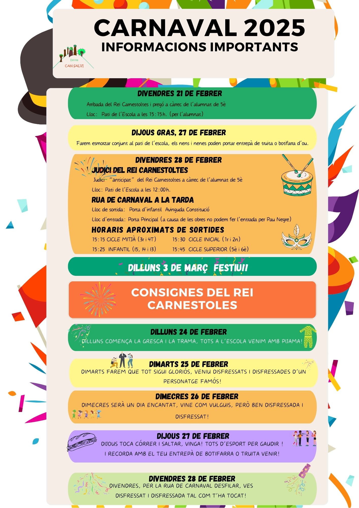 DIMARTS 24 de febrer a les 15.15h i DILLUNS 2 de març a les 15.15h.