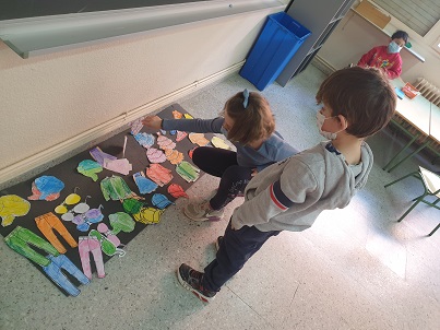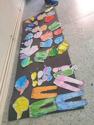 Boys and girls from 1st, have been coloring clothes to put them together and make the role play of a shop in england.