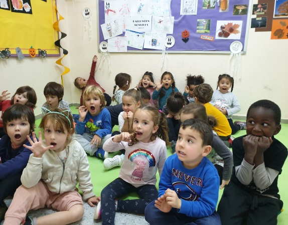 After reading a book about the feelings of a monster, we made faces, look. Després de llegir un llibre sobre els sentiments d’un monstre, hem fet cares amb diferents sentiments, mireu.