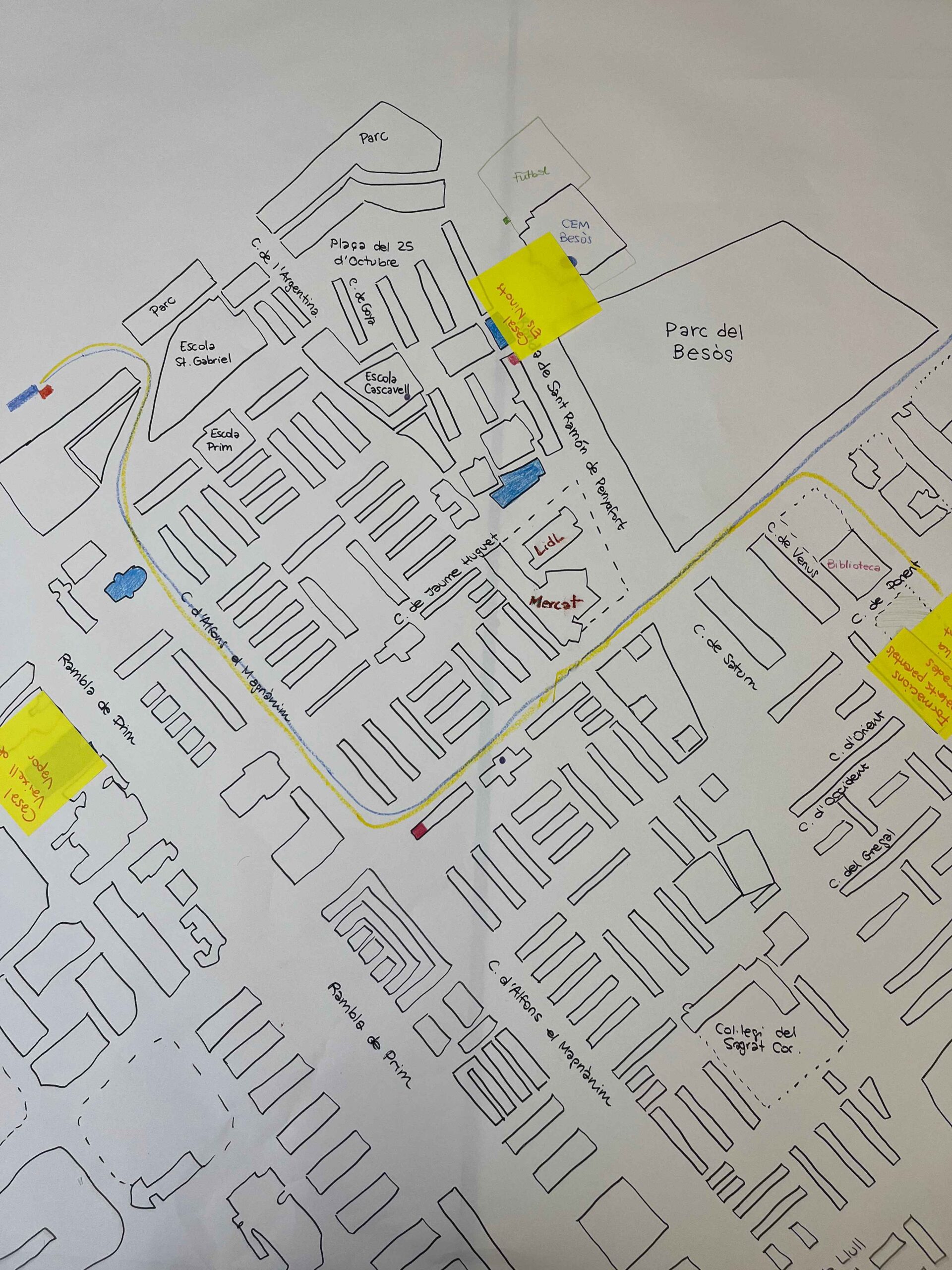 Aquest darrer dimecres vam crear un mapa del territori gegant per poder conèixer quines entitats, associacions i institucions ens rodegen i que podem sol·licitar o realitzar en aquests espais.