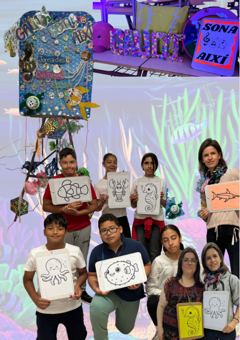 Per un moment, ens vam capbussar i tots nosaltres ens vam convertir en un animal marí (un peix pallasso, un peix globus, un cavallet de mar,  un pop, una medusa i una llagosta) I … entre algues, meduses i peixos del fons marí, dansàvem dins d’un hexàgon fluorescent, tot descobrint un dels edificis més emblemàtics de Gaudí: La Casa Batlló.  Quina emoció!