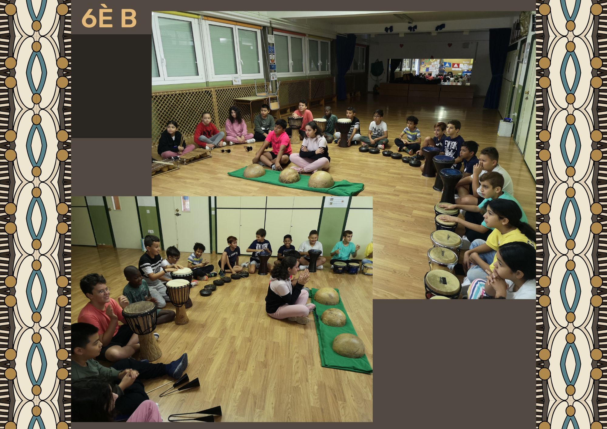 - El djembé, d’Àfrica, fet amb un tronc d’arbre, pell de cabra i el seu so és greu quan piquem al centre, i agut, quan piquem als costats.