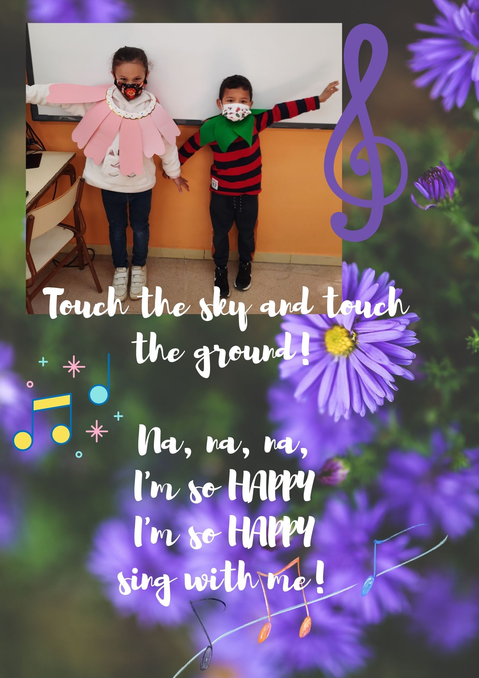 In the Music subject we have learnt an English song and we would like to show you how well we are doing it. Look at the pictures and the video of one of the songs!