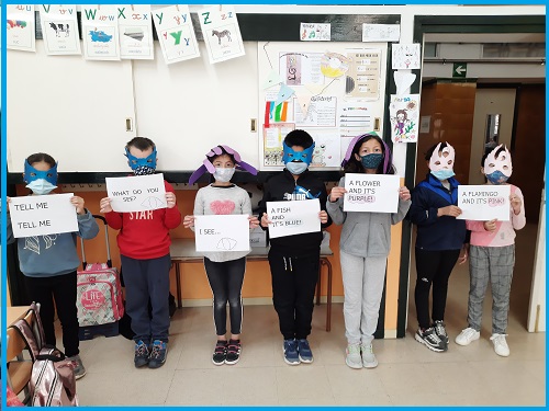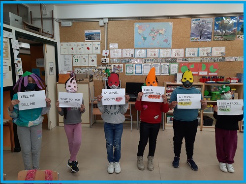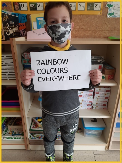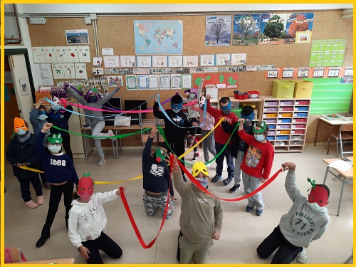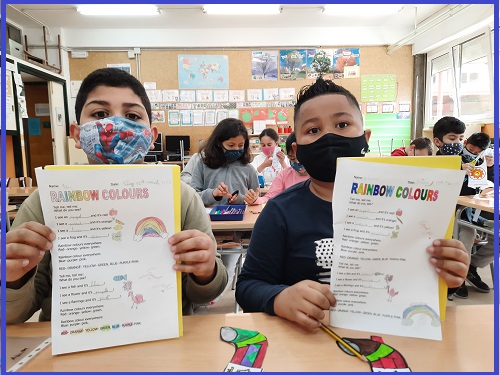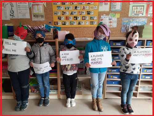 In the Music subject we have learnt some English songs and here you can see an example of one of them with our Rainbow masks.