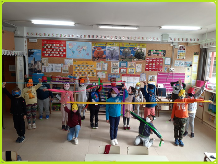 ♦ A música hem après unes cançons en anglès i aquí podreu veure’n una petita mostra d’una d’elles amb les nostres màscares dels colors de l’arc de Sant Martí.